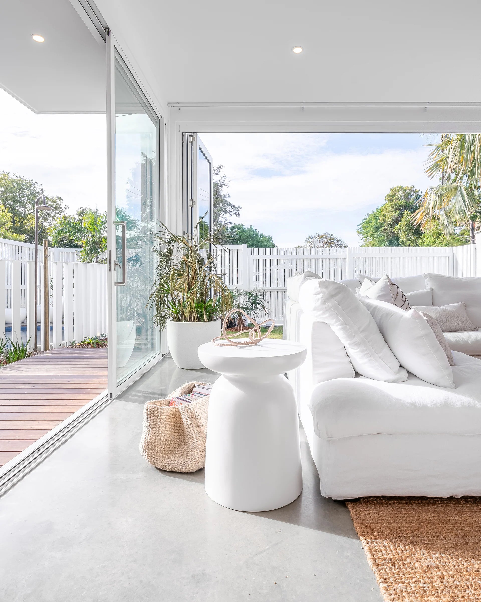 Hand-poured resin lacquered in premium-grade white outdoor paint.