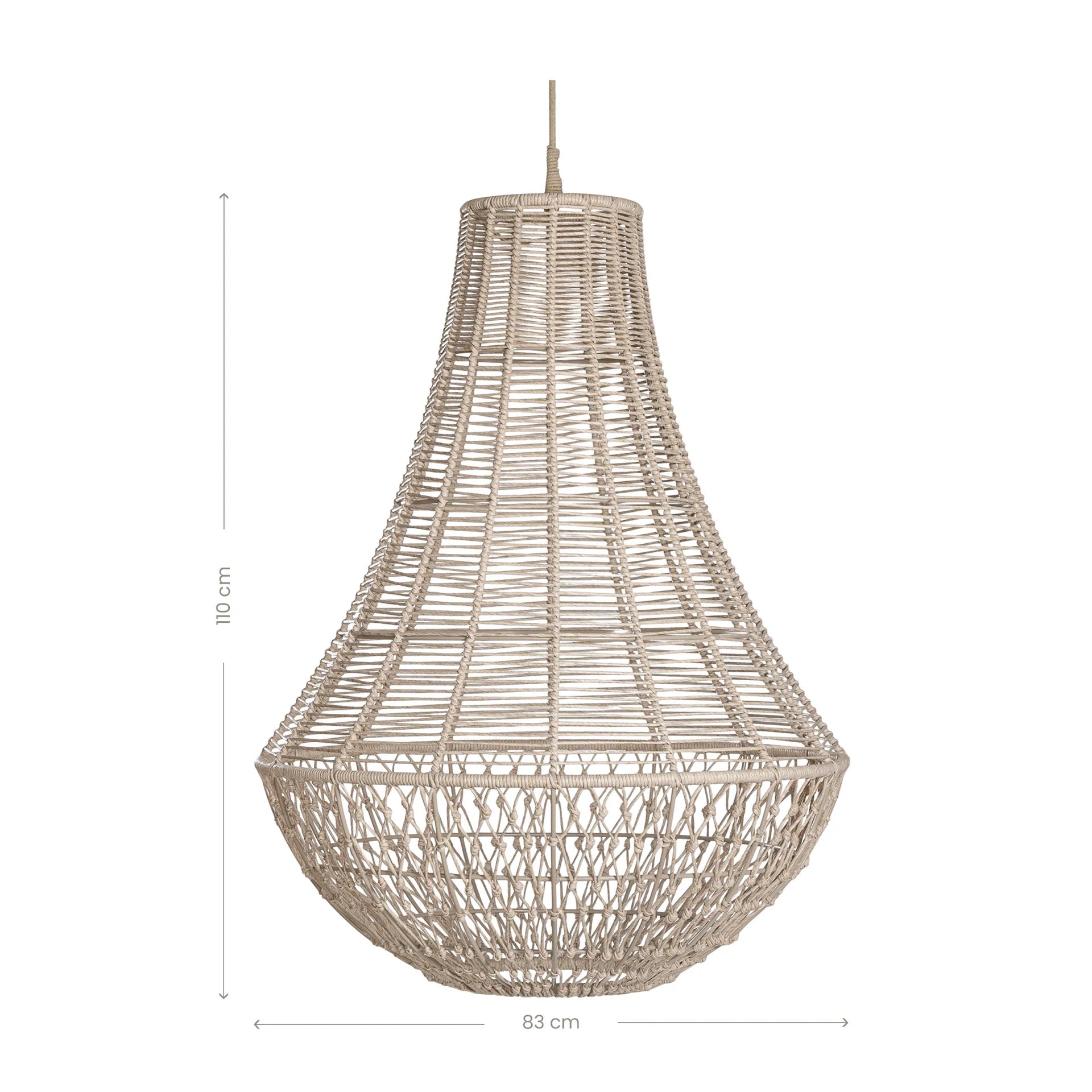 Sold as pendant light shade. Supplied with a decorative ceiling rope. We recommend sourcing suitable light fitting system and installation by a qualified electrician.
