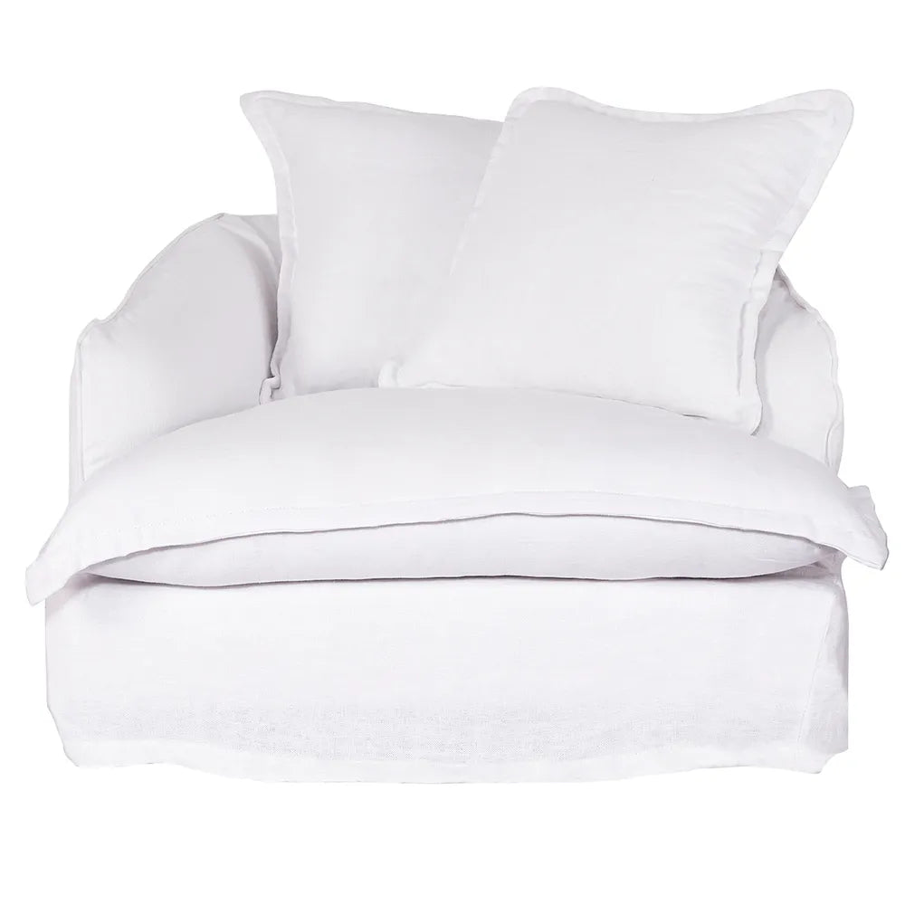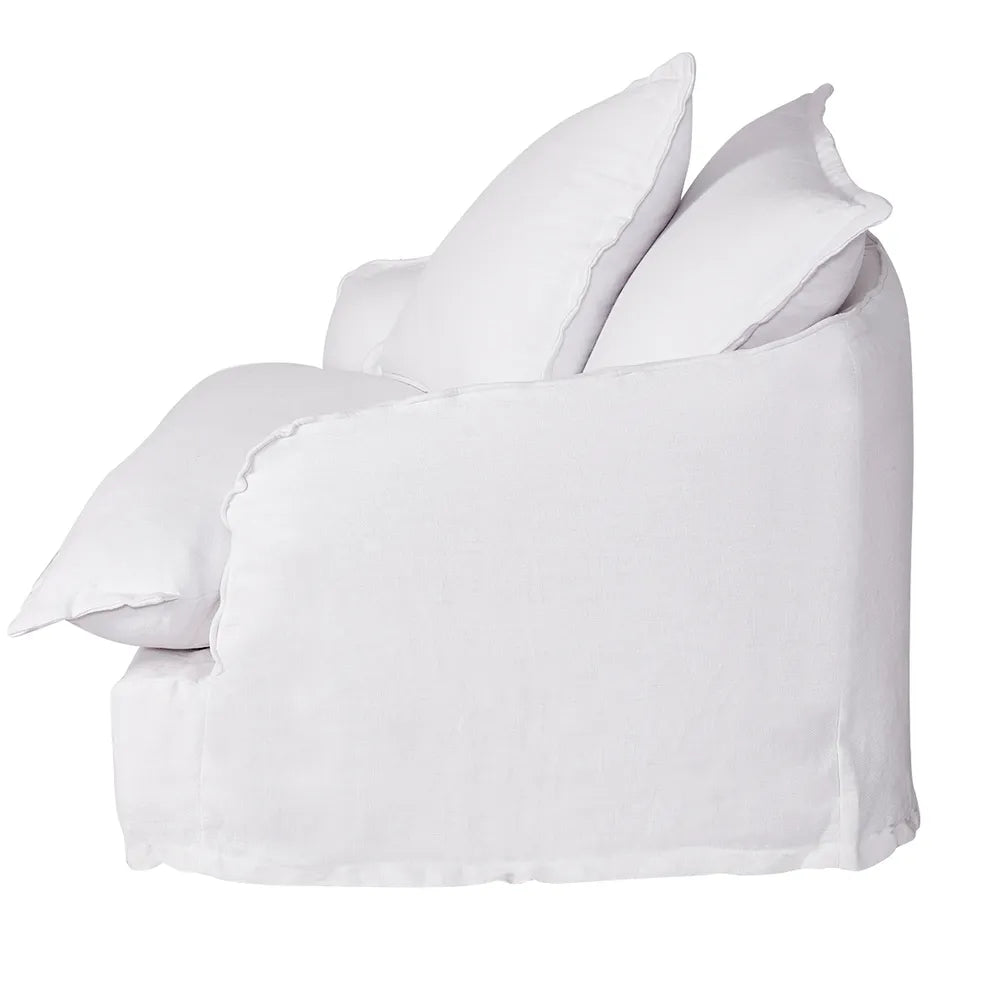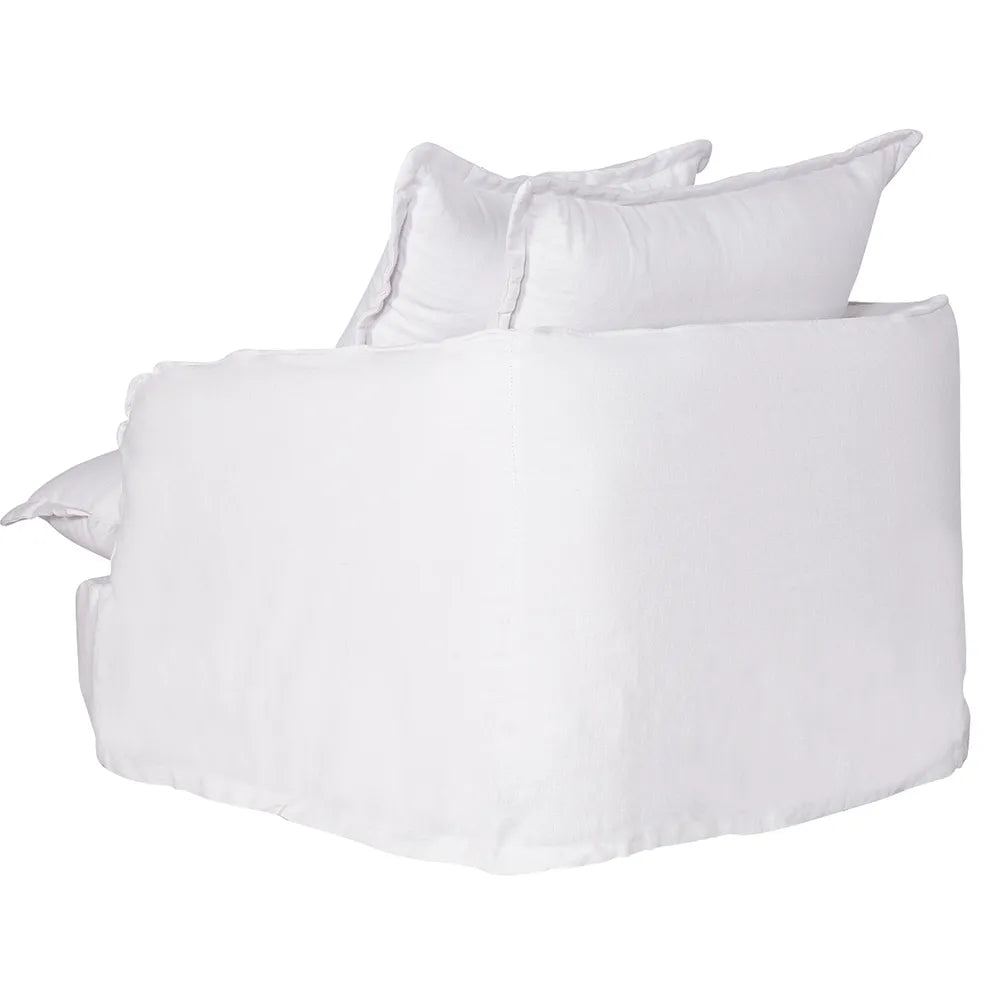 Indulge in the Hayman Slip Cover Arm Chair, a masterpiece designed for Coastal, Contemporary, and Hamptons interior styles. Immerse your spaces in pure comfort with its 100% Linen upholstery, meticulously crafted in Vietnam. Revel in the effortless beauty, comfort, and streamlined design, reminiscent of timeless elegance. This arm chair boasts a detailed 2.5cm flange edge, a fully removable base cushion, accompanied by A matching scatter cushion and back cushion. Elevate your design vision with Hayman, where practicality meets unparalleled beauty. Available in Natural and White Linen. Professional dry cleaning services only.