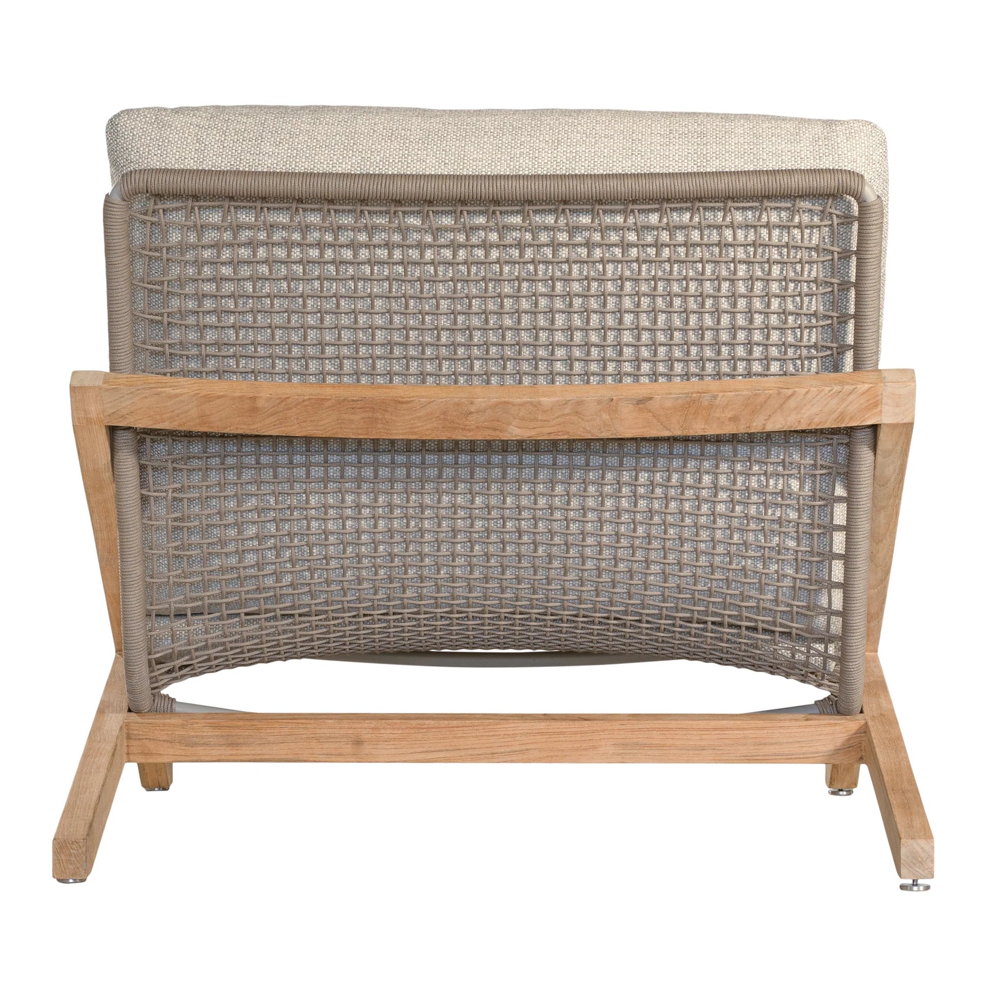 The Lamu Occasional Chair is a low-to-the-ground masterpiece that perfectly balances generous comfort and a raked backrest. Crafted from well-considered materials like durable teak wood and weather-resistant outdoor rope, this chair is not just a lounger; it's a statement piece for any outdoor space.