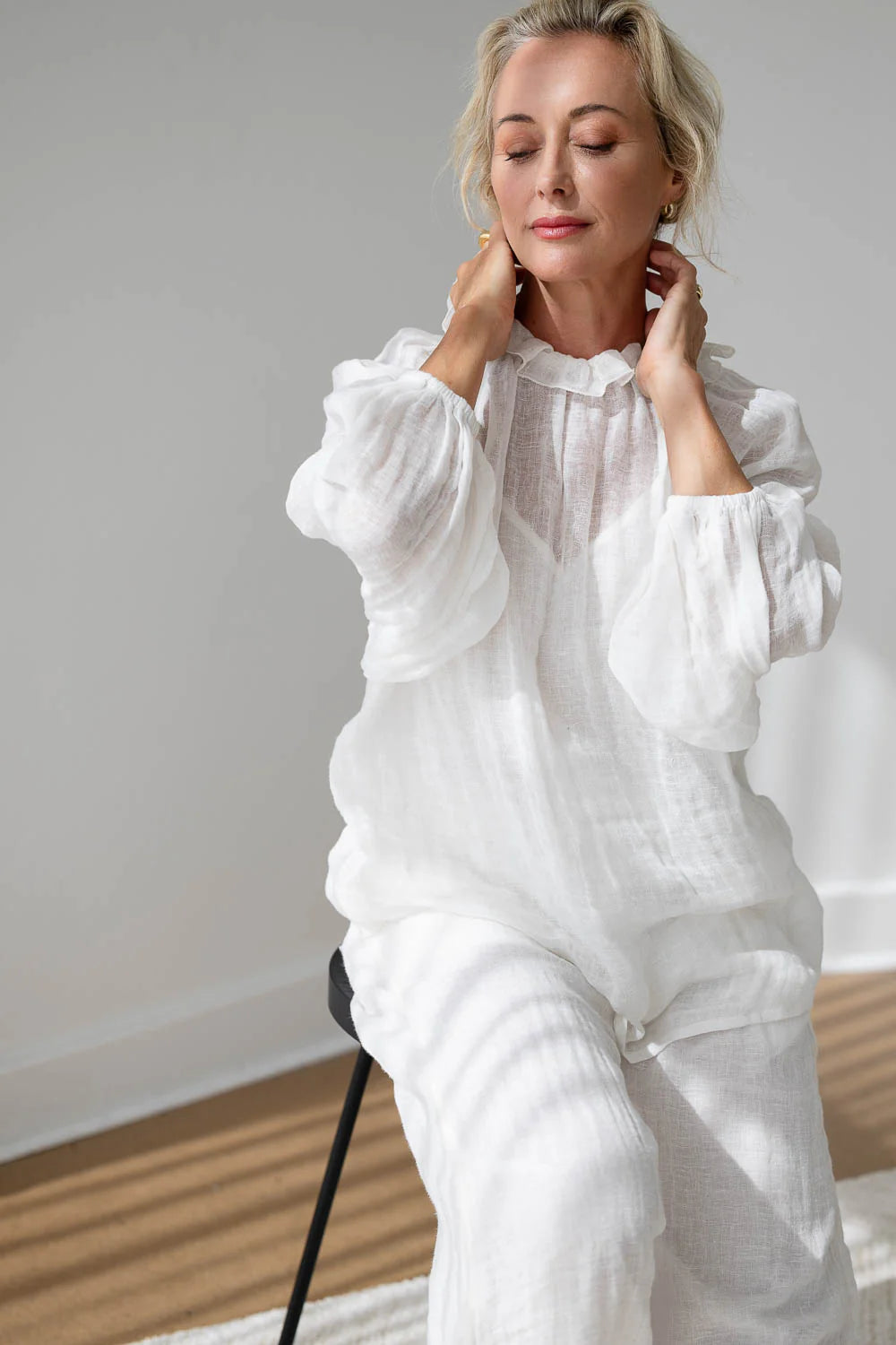 Eadie's Luxe Linen Capsule is crafted from luxe lightweight gauze linen. This apparel collection utilises our exclusively developed gauze linen fabric, renowned for its exceptional softness and graceful drape on the body.
