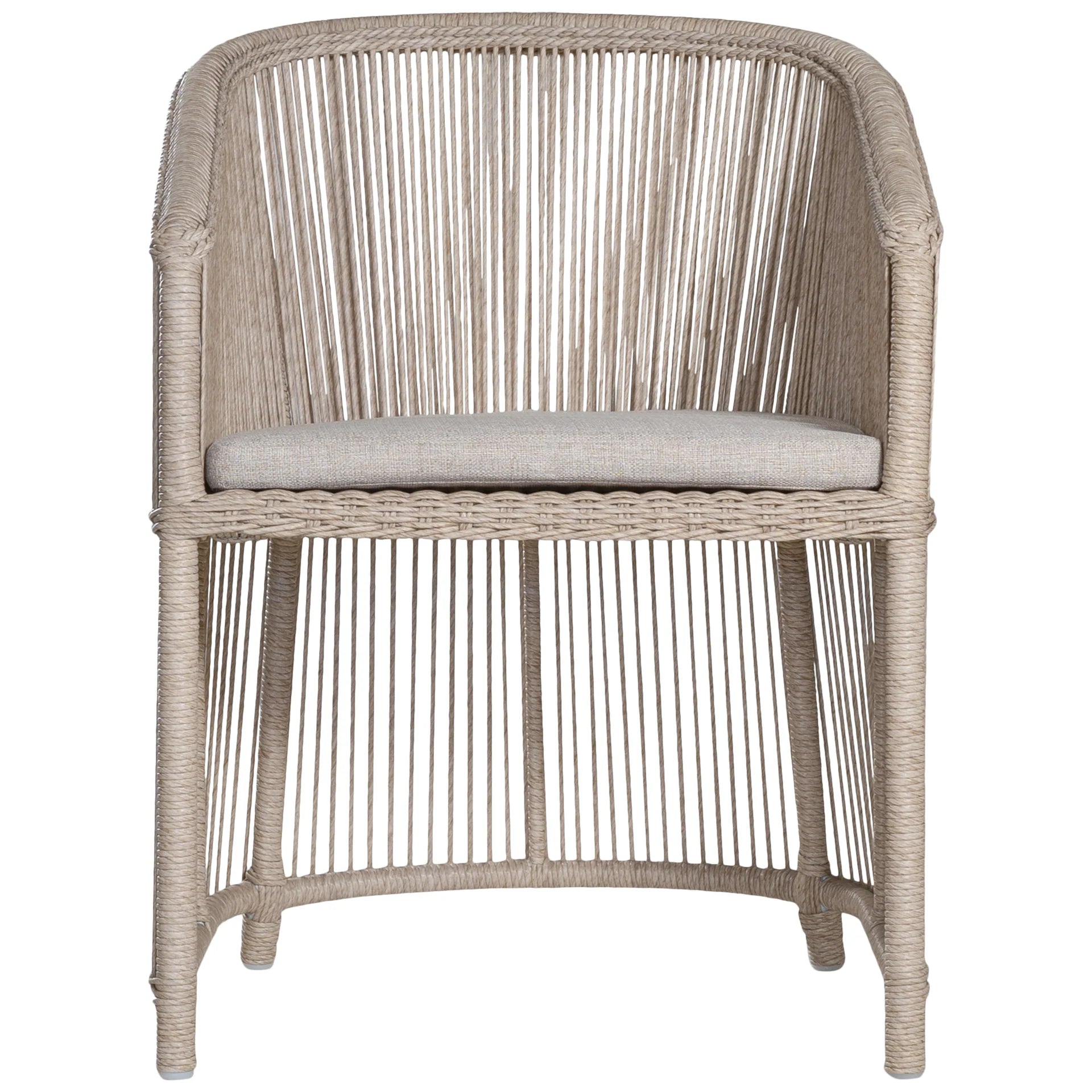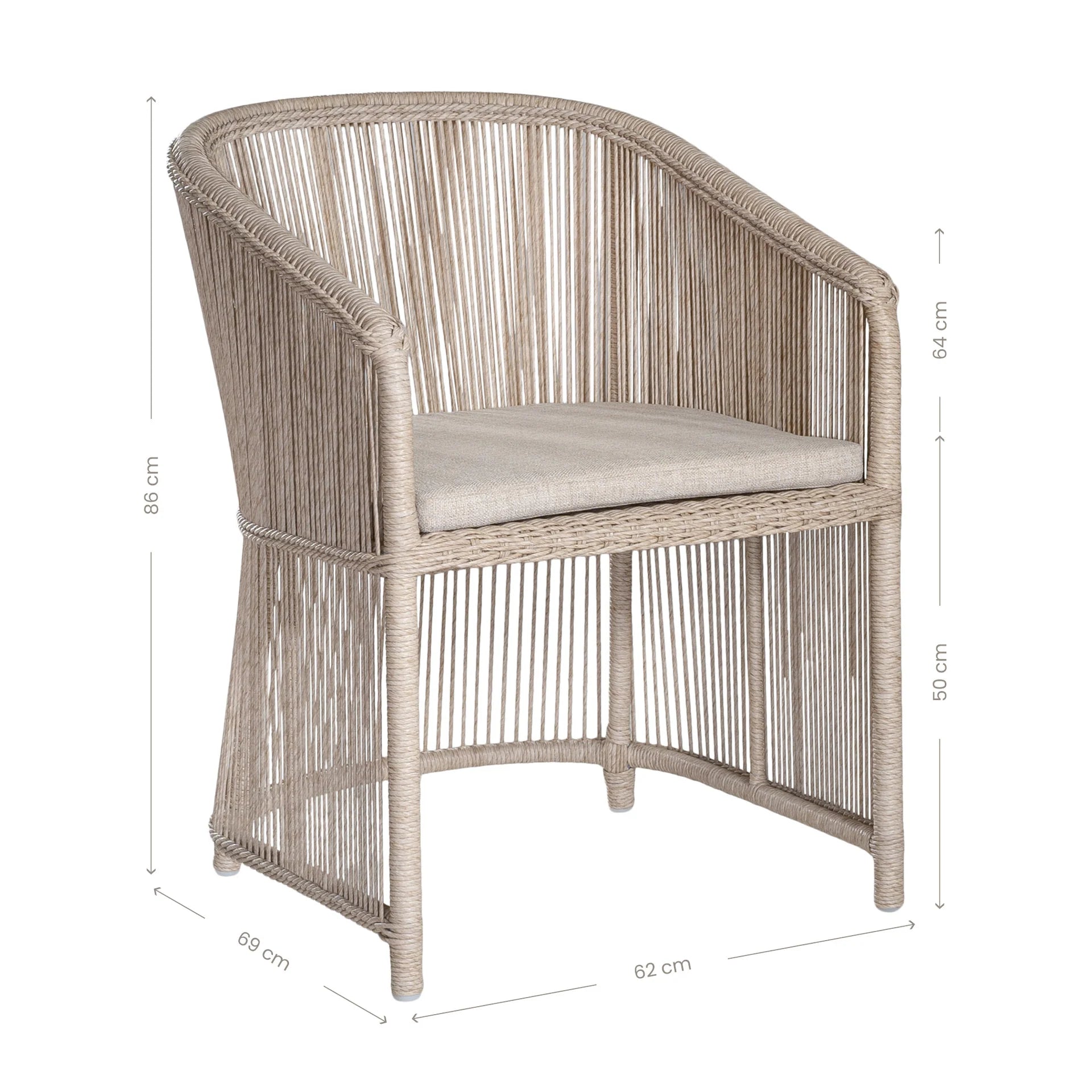This tropical-look outdoor chair is made from an all-weather polyrattan weave in a stylish straight rope design over a sturdy aluminium frame and is suited to outdoor conditions.