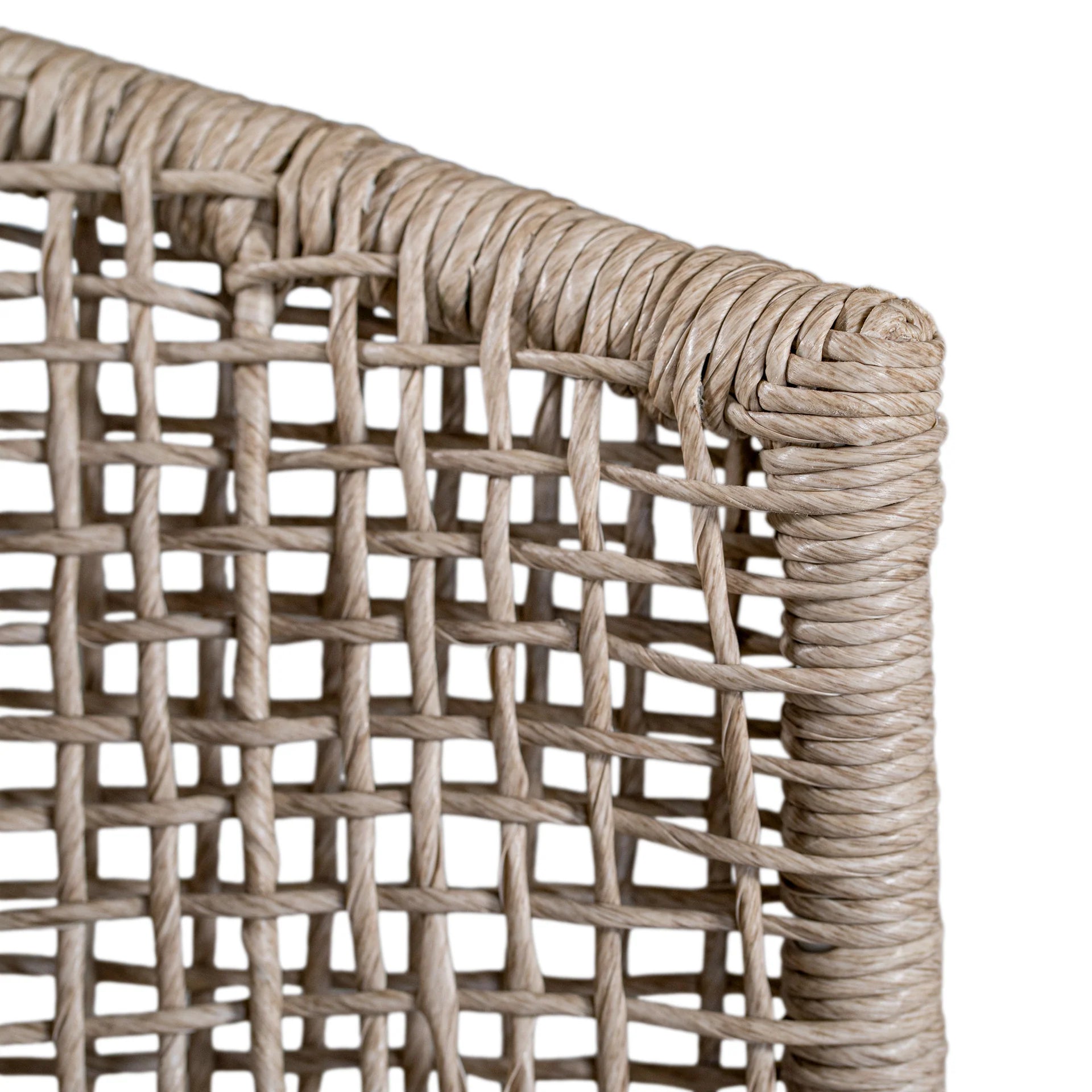 The hand-woven pattern of the chair is a work of art, expertly executed in high-quality polyrattan. This material adds a touch of elegance and ensures the chair's resilience against various weather conditions. For added comfort, double webbing is incorporated for the back and side parts of the chair.