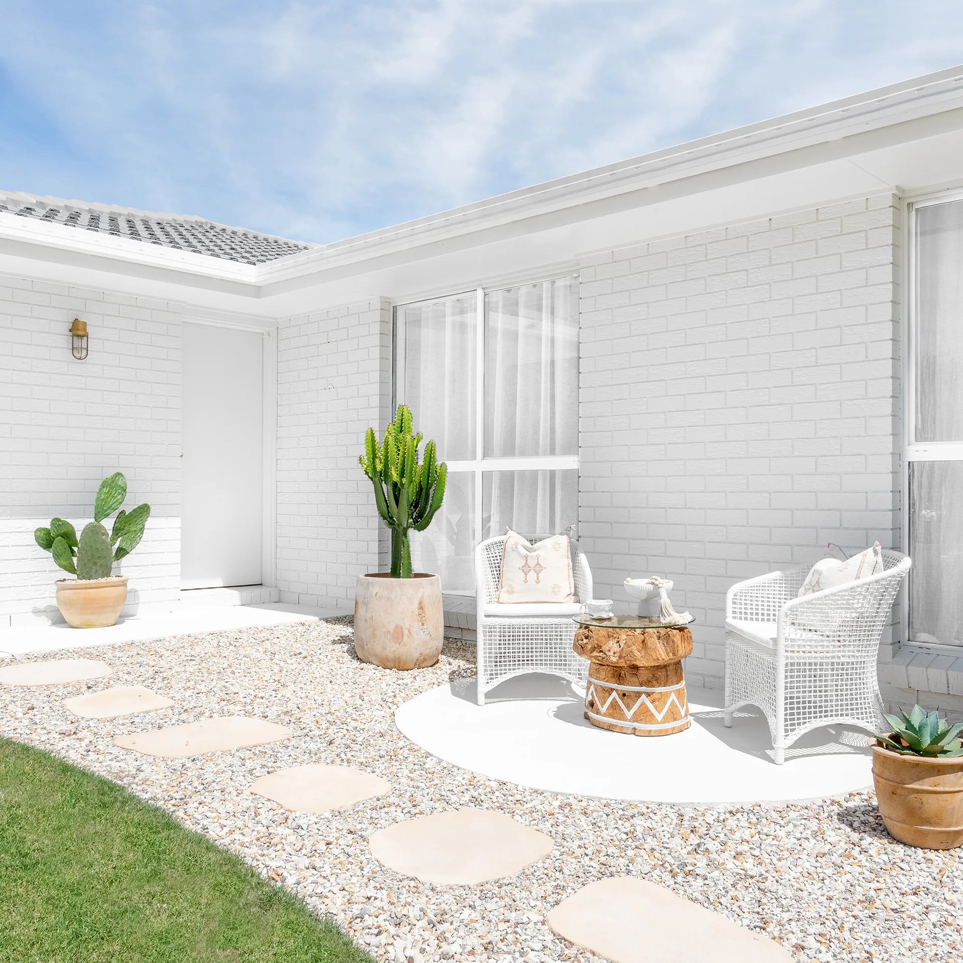 Made from all-weather white polyrattan weave over a powder-coated aluminium frame, the Trinidad Dining Chair is a contemporary and versatile choice for any outdoor dining area and will pair with a range of table styles.