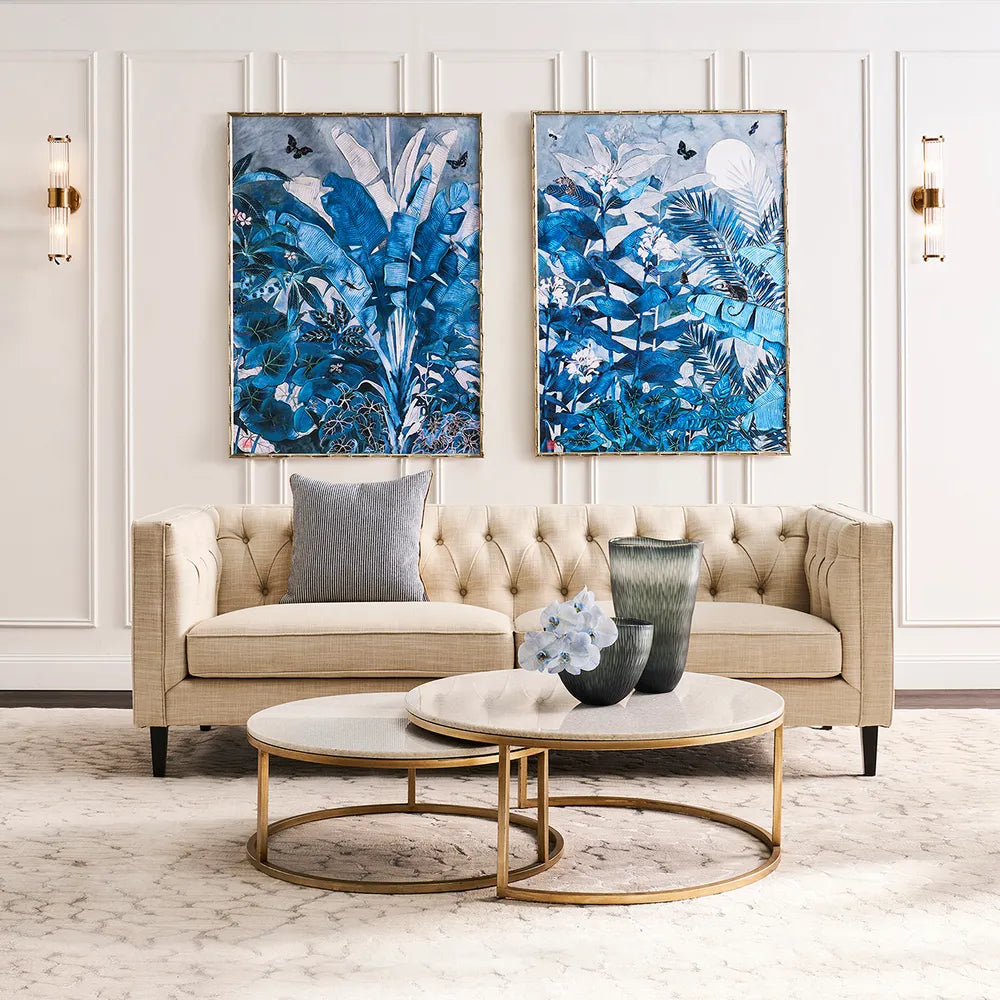 Exquisitely upholstered with a beautiful button-tufted backrest and detailed piping in an elegant natural linen blend fabric, the Tuxedo 3 seater tufted sofa features a foam and dacron wrap cushion seat for maximum comfort. The simple lines and black timber legs work in charming contrast to the classically detailed upholstery creating a timelessly sophisticated sofa that is the ultimate in classic contemporary design. Also available in cool grey, charcoal and navy velvet.